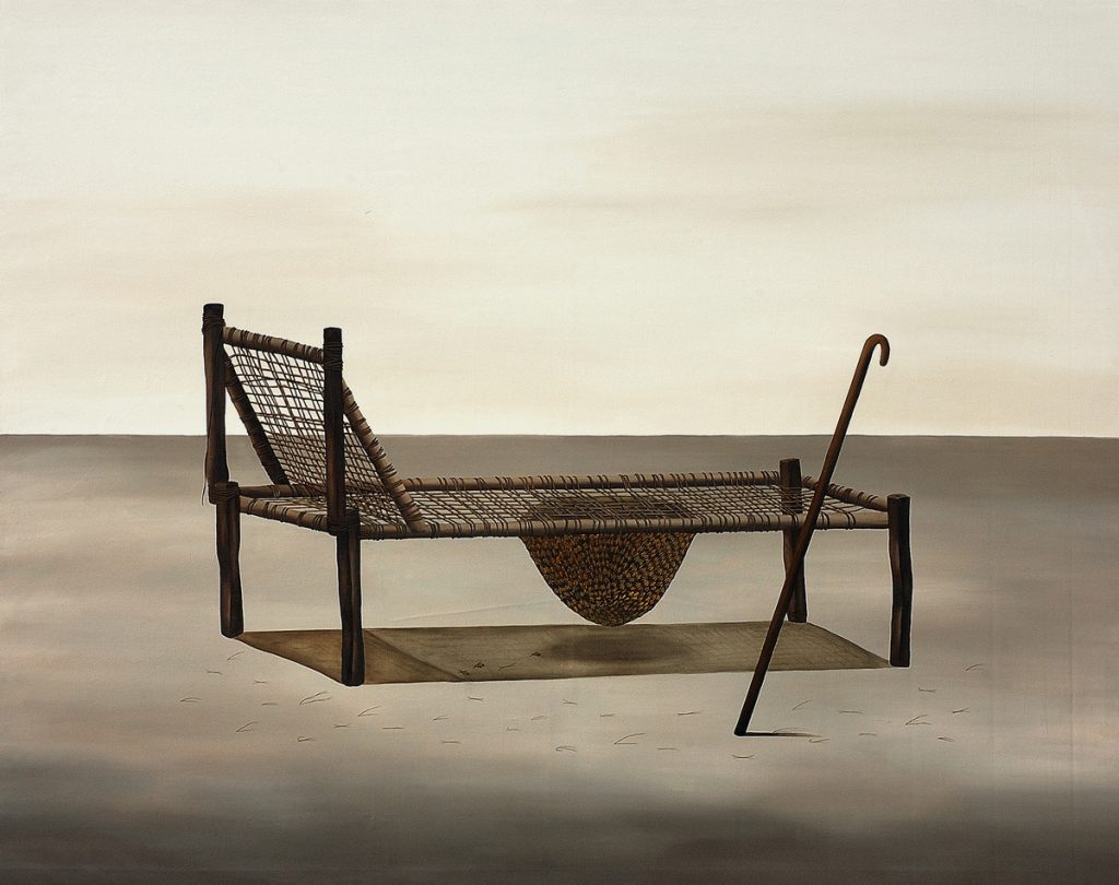 original attributes of the subjects, Mehta’s paintings are metaphysical quandaries, not surreal
