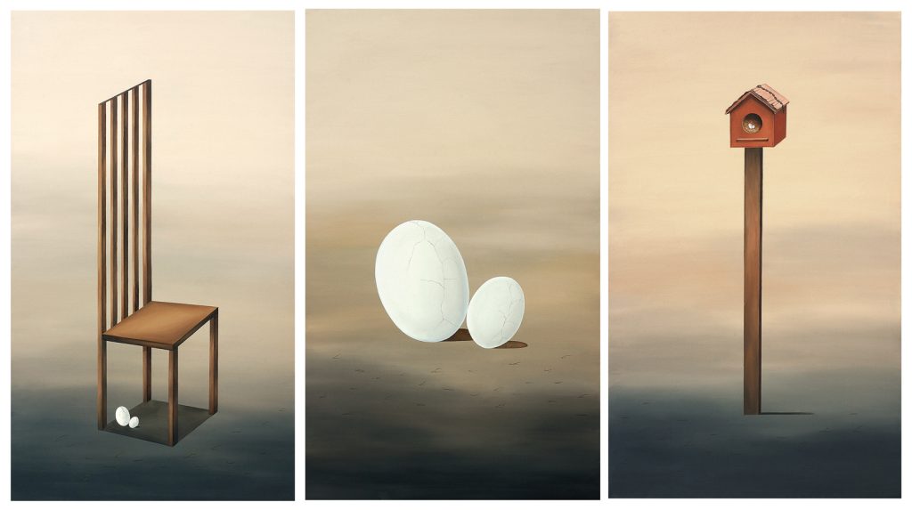 The vistas, dominated by waiting-to-hatch eggs, may at first sight be reminiscent of Salvador Dalí’s