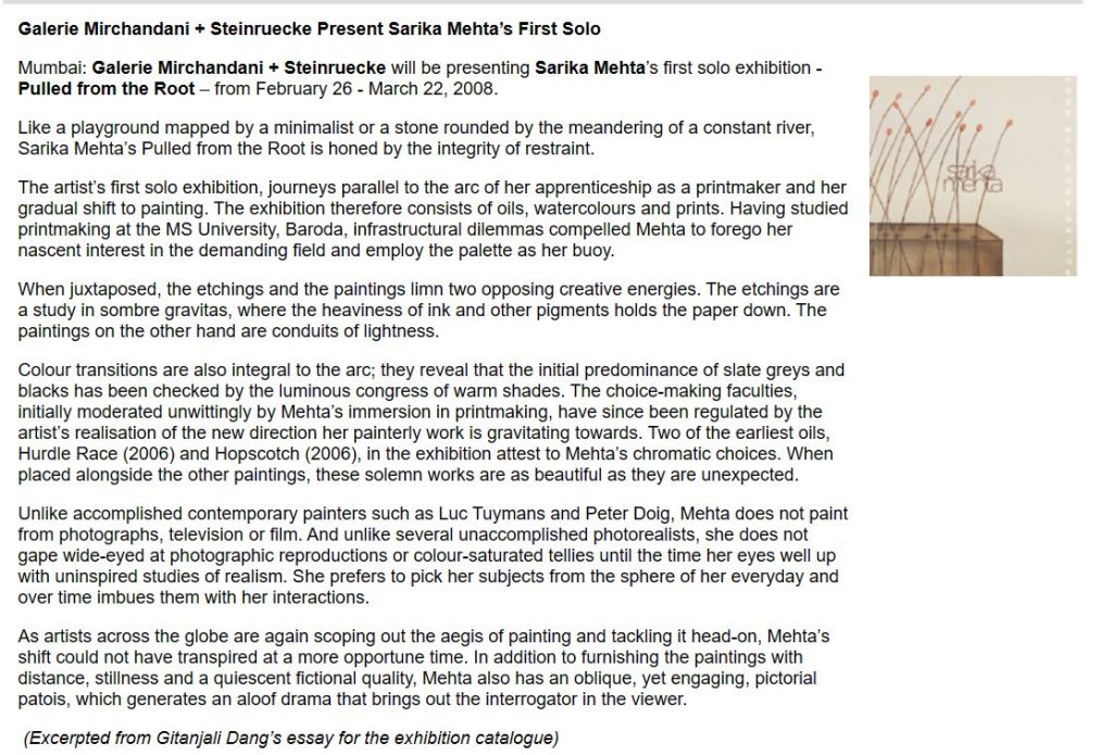 Sarika Mehta’s Pulled from the Root is honed by the integrity of restraint.